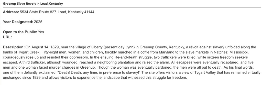 History happened and we are all part of a much bigger story. History is bigger than all of us. There are more than 800 sites on the National Underground Railroad Network to Freedom, and the Greenup Slave Revolt story is another one of them. https://www.nps.gov/orgs/1205/index.htm